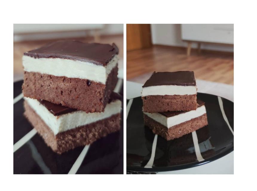 Umutiti 5 jaja, 5 kašika šećera i 5 kašika brašna, dodati 1,5 kašiku kakao. Sve to sipati u podmazan pleh i peći na 200 stepeni 20 minuta. Pečeni kolač preliti sirupom od 350 ml vode i 250 gr šećera, koji je prokuhan i ohlađen.