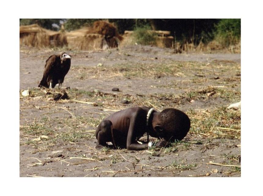 Iako se u početku vjerovalo da je riječ o djevojčici, ispostavilo se da je to fotografija dječaka, koji, potpuno iznemogao od gladi, pokušava doći u centar za hranu Ujedinjenih nacija u Ayodu, u Južnom Sudanu, u martu 1993., dok u njegovoj blizini vreba veliki lešinar. Dramatična slika je osvojila Pulitzerovu nagradu za funkcionalnu fotografiju 1994. godine.