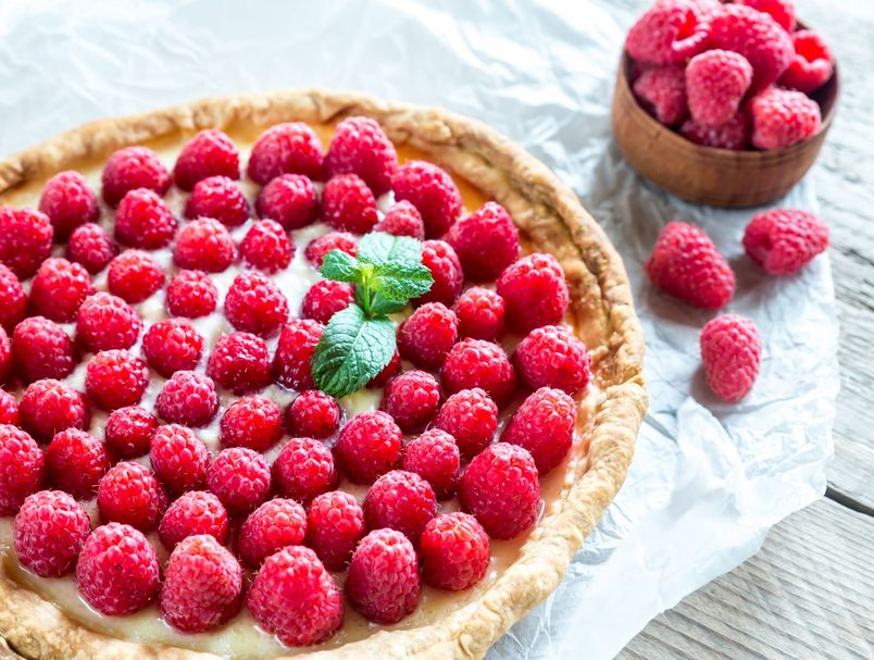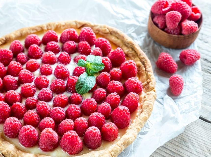 Kada se tijesto malo ohladi, napunite ga kremom, a na vrh stavite svježe maline.