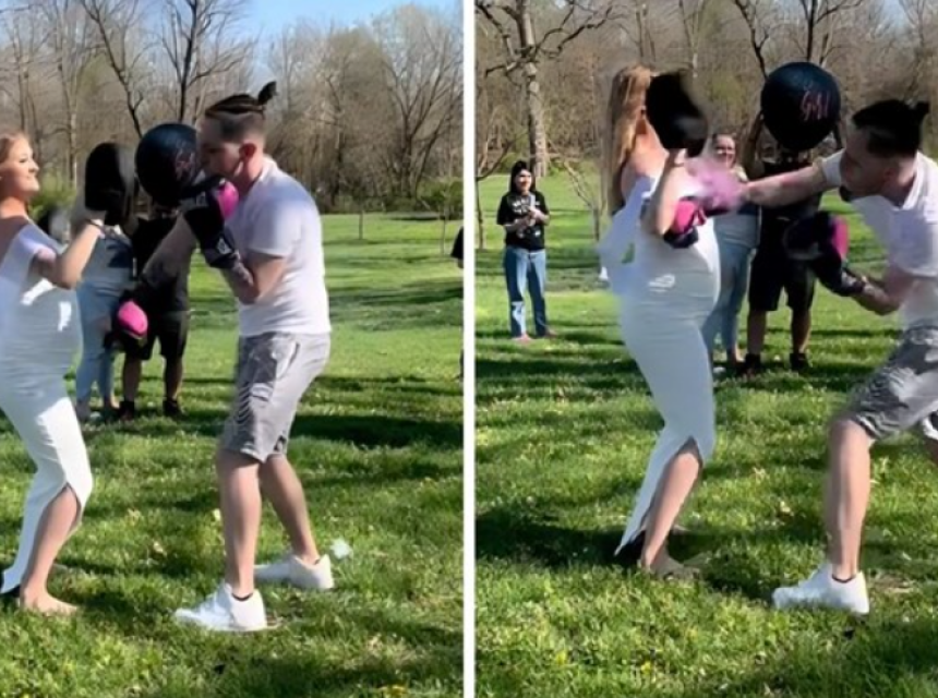Kirra Mahaley i njezin partner odlučili su boksanjem otkriti bližnjima čekaju li djevojčicu ili dječaka. Kirra je na ruke navukla jastučiće u kojima je bio skriven prah ružičaste boje koji otkriva da čekaju djevojčicu. Njezin partner navukao je boksačke rukavice i snažno udarao svoju partnericu kako bi u zrak poletio prah i otkrio kojeg je spola njihovo nerođeno dijete.
