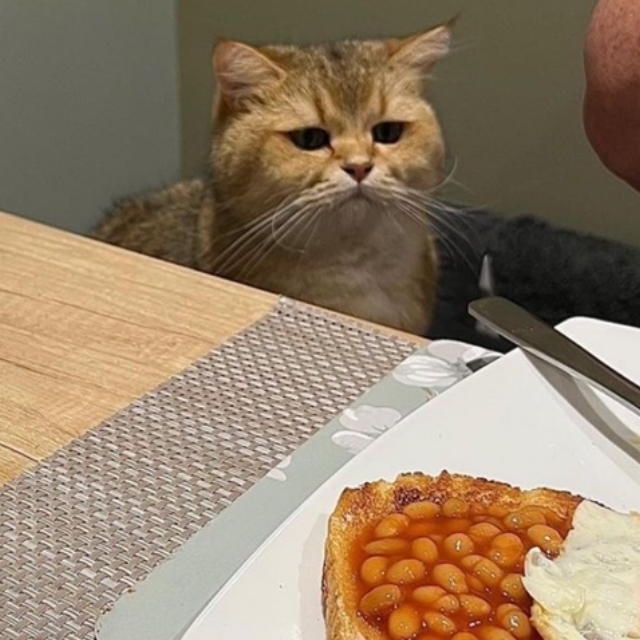 KAD njegovi vlasnici sjednu za stol kako bi večerali, mačak Bertie prilično je tužan što i on ne može uživati u ukusnoj hrani. Štoviše, zbog izraza lica koje radi dok promatra kako ljudi jedu, postao je viralan.