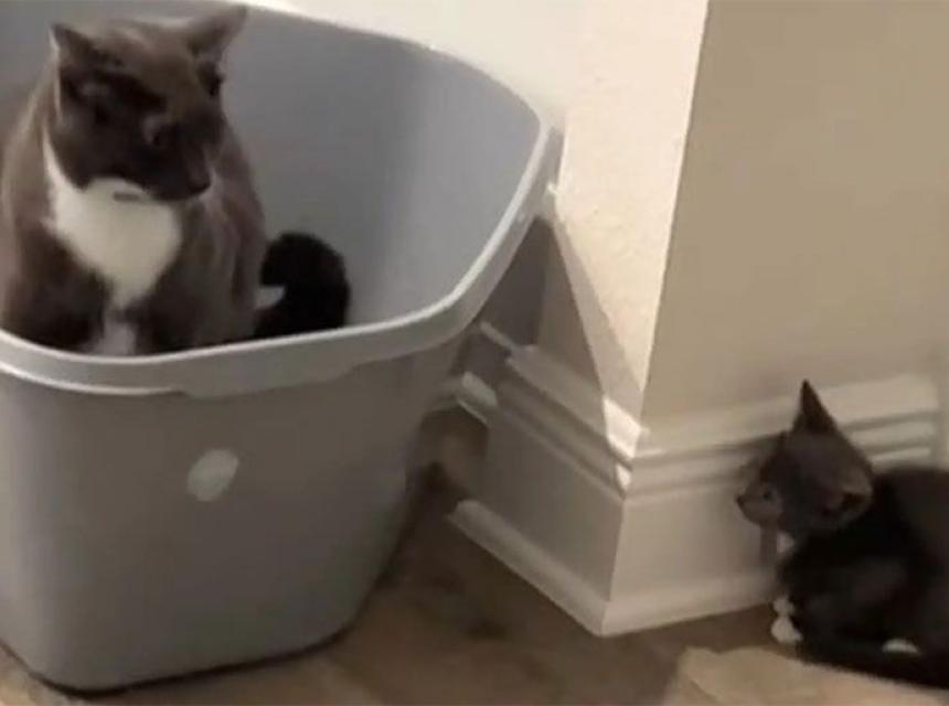 Objavila je video kako se njihova dvogodišnja mačka ponašala kada je prvi put ugledala pridošlicu - novog mačića. Ona je, kako kaže, 'zalajala'.