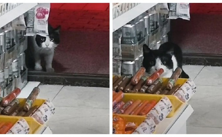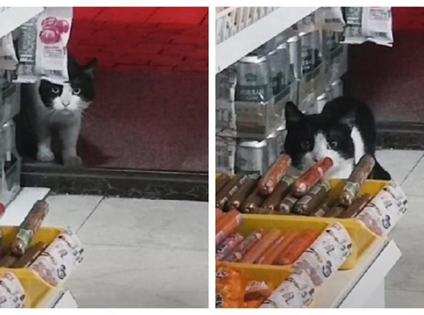 Jedan je gladni mačak postao pravi hit na TikToku, i to zbog drske krađe salame. Mačak je prvo stajao na vratima trgovine i pomatrao ima li koga, a kada je vidio da nema opasnosti, krenuo je u akciju.