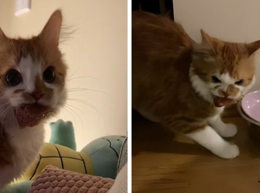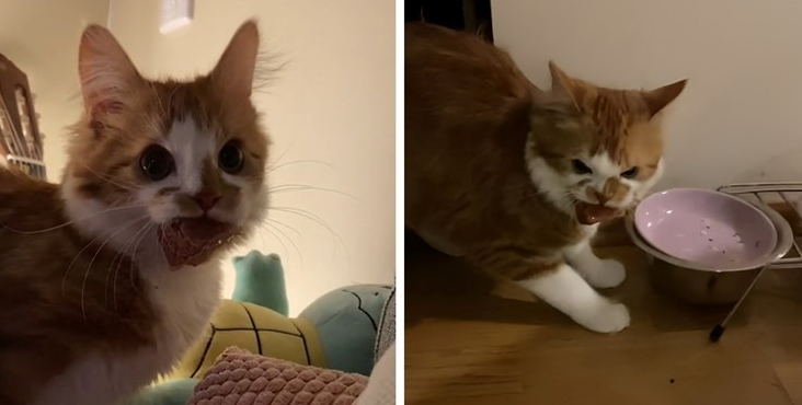 Na snimci koju je Rahasnan podijelila na svom TikTok profilu možemo vidjeti kako se vlasnica pokušava približiti Benjiju kako bi vidjela njegovu reakciju, ali on to krivo shvaća i počne bježati po sobi s hranom u ustima. Tuna za to vrijeme mirno jede svoju porciju ručka.