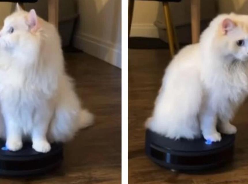 Decklyn sjedni na uređaju koji se kreće ispod stola. Mačak se ne zabrinjava kada robot krene prema nozi od stola, čak ni kada se počne zavlačiti pod stolac. Iako je komad namještaja prilično nizak, on se ne sagne ni centimetra. Decklyn na usisivaču prolazi ispod stolca i nastavlja avanturu kroz ostatak stana.Prvotno objavljen video skupio je 12 milijuna pregleda, a nakon što je autorica ponovila hit, pregledan je još 6 milijuna puta. Jasno je i zašto.