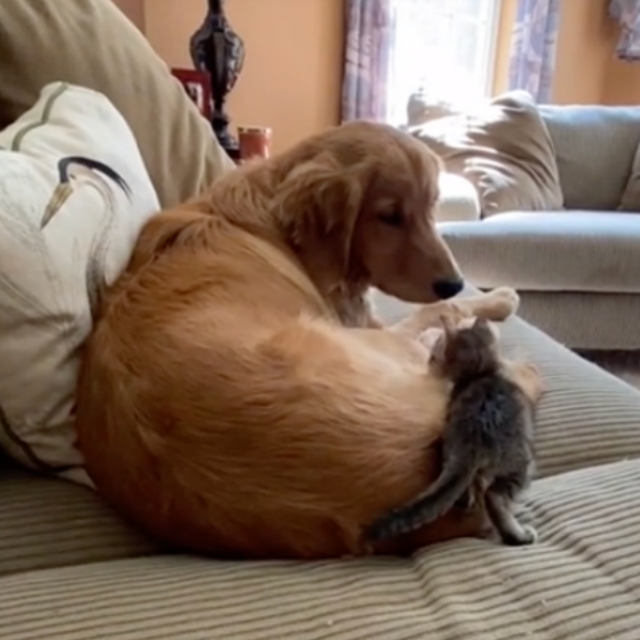 PSI I MAČKE nisu uvijek neprijatelji. Najbolji primjer su Monkey i Kai, dva ljubimca koja dijele isti dom. Mačić Monkey se jednog poslijepodneva poželio maziti s Kaijem pa mu se oprezno došuljao s leđa, ne želeći ga prekinuti u drijemanju.