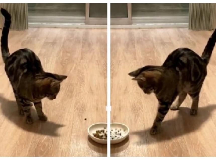 Jedna je mačka dobila više hrane nego inače, a njezina reakcija postala je totalni hit na internetu. Snimku je podijelio njezin vlasnik, tiktoker @leonthecatdad koji je odlučio nakrcati njenu zdjelicu hrane.