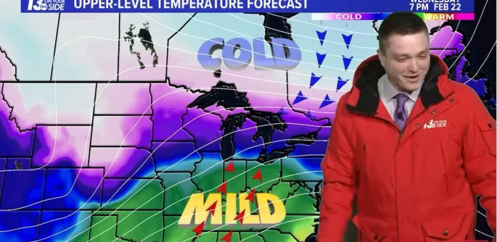 Meteorolog Blake Hansen iz Michigana pokušao je upozoriti gledatelje na snježnu oluju koja pristiže, kada ga je uplašio razigrani mačak.