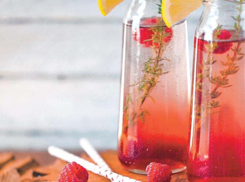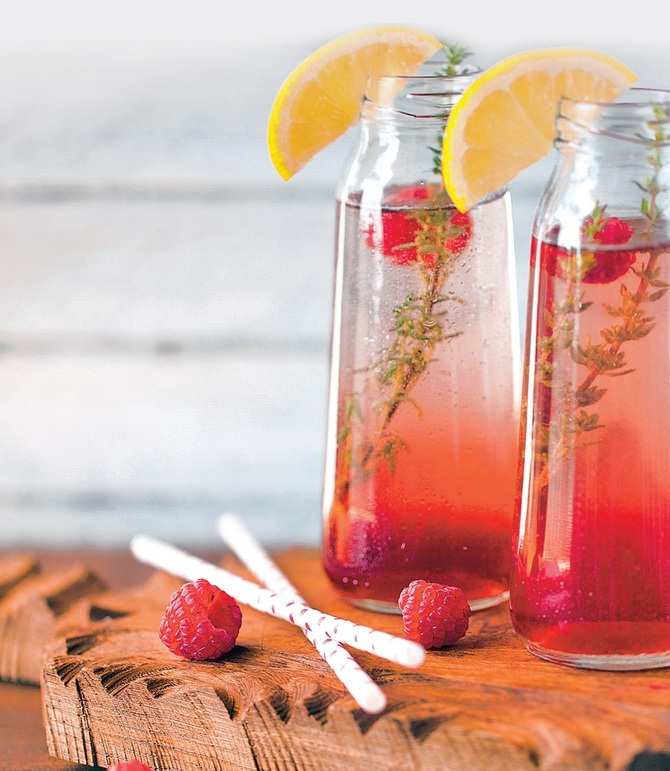 Rasporedite po 250 grama malina u 5 litarskih staklenih flaša. U svaku flašu dodajte po kesicu limuntosa i po grančicu nane. Od šećera i vode skuhajte sirup i vruću tečnost sipajte preko malina. Flaše zatvorite i dobro promućkajte i ostavite da stoje preko noći. Sok čuvajte u frižideru.
