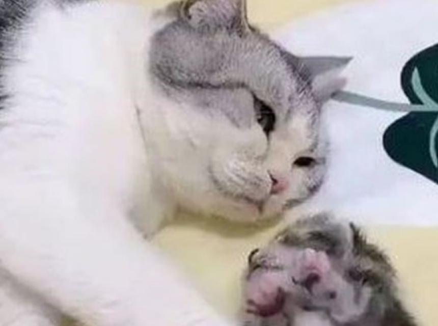 Jedan preslatki mačić ružno je sanjao te se cijelo vrijeme nemirno vrtio na leđima, kao da se svim silama trudi probuditi i vratiti u realnost. Srećom, u blizini je bila njegova majka koja ga je primila u svoj zagrljaj i pokušala smiriti. Izgledalo je kao da mu želi poručiti da se nema čega bojati dok god je ona tu.