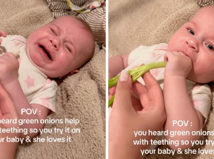 NICANJE zubi obično je neugodno iskustvo za bebu, ali i za roditelje. Međutim, jedna snalažljiva mama pronašla je način da vrati osmijeh na lice svoje kćeri. U viralnom TikTok videu, Kristina King pokušala je smiriti djevojčicu dajući joj da žvače mladi luk. Srećom, trik je uspio.