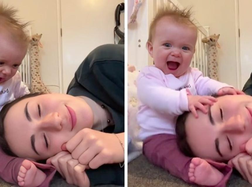Dakle, nakon što se naslonila na kćer, pravila se da je zaspala. Djevojčica se odmah počela smijati i mahati rukama; izgledala je presretno.
