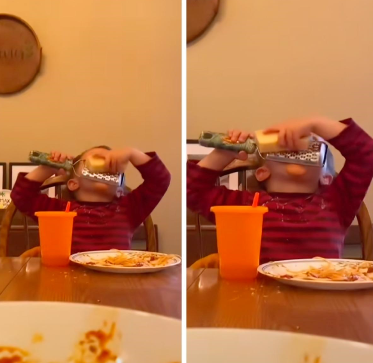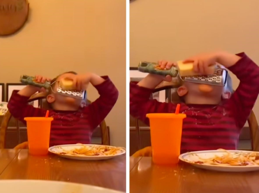Dječak ovu popularnu vrstu sira nije naribao u tanjur pa jeo s ostatkom hrane, već je odmah odlučio sir naribati i pustiti da pada u njegova usta. "Vratila sam se za stol i vidjela ovo", piše na videozapisu, a Katelyn se u opisu videozapisa našalila: "U ovoj kući smo veliki obožavatelji parmezana".