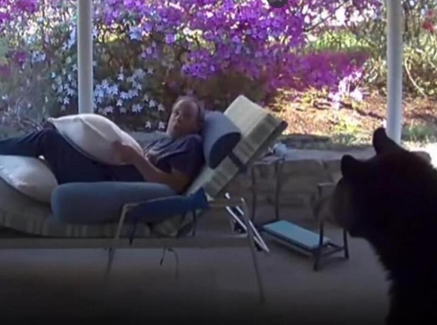 David Openheimer se odmarao na ležaljci kada se iznenada pojavio medvjed i prišao mu veoma blizu. Muškarac se očekivano uplašio i trznuo, a sličnu reakciju je imao i medvjed.