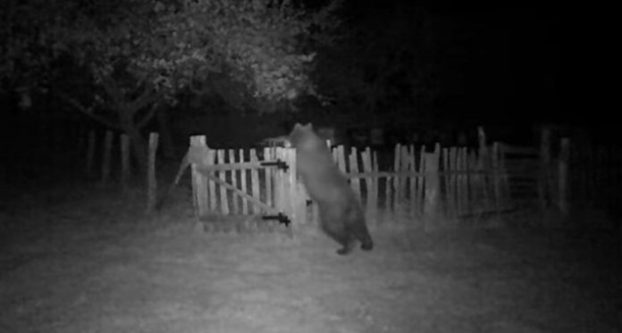 Kamera Lovačkog udruženja “Balj” snimila je medvjeda u pohodu i prošle noći, a na snimku se vidi kako provaljuje ogradu da bi došao do meda.