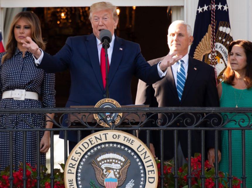 Prva dama SAD-a pojavila se u modroj haljini s bijelim tačkicama, a njen outfit izazvao je pažnu prisutnih, kao i veliki osmijeh koji je nosila na licu, na koji kod nje i nismo baš navikli.
