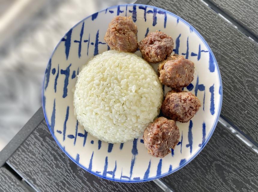 Za mesne okruglice potrebno vam je: 300 grama mljevenog mesa, peršun, Vegeta , crvena paprika, mješavina bibera, jedno jaje, so, jedna kriška hljeba natopljena u mlijeko (daje mekoću okruglica). Oblikujte okruglice te stavite u frižider barem pola sata da se stisnu dodatno. Uvaljajte u brašno te pecite na vrelom ulju dok ne dobiju finu hrskavu koricu.