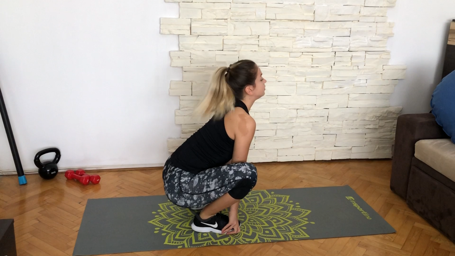 Stati se u široki raskoračni stav i spuštati se u iskorak na jednu nogu, pa zatim na drugu (lateralno). Probati se spuštati što niže moguće, ali bez da se pete odižu od tla.
