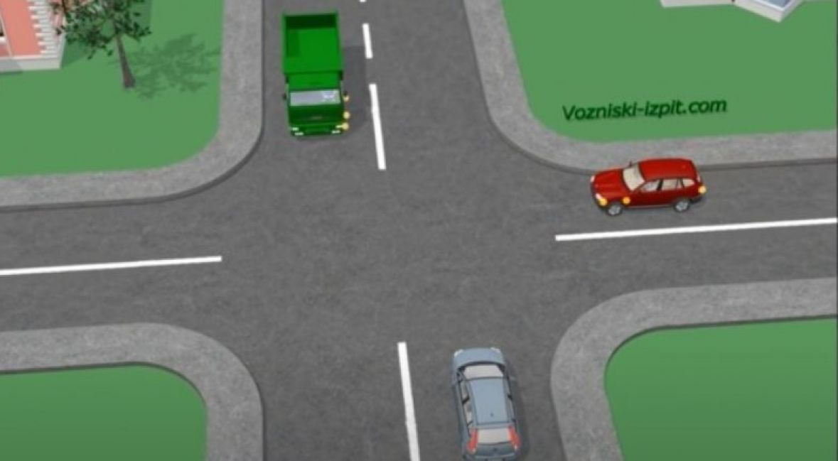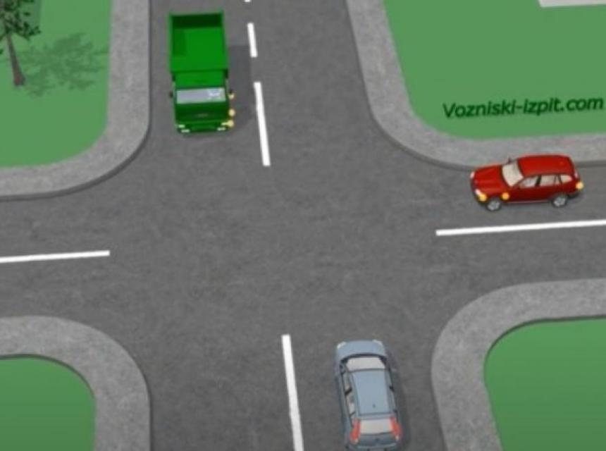 Dakle - prema ovim pravilima, prvo će proći kamion, pa crveni, pa plavi automobil.