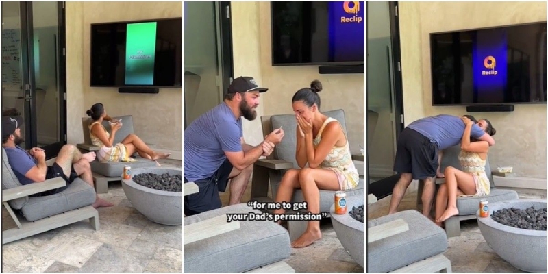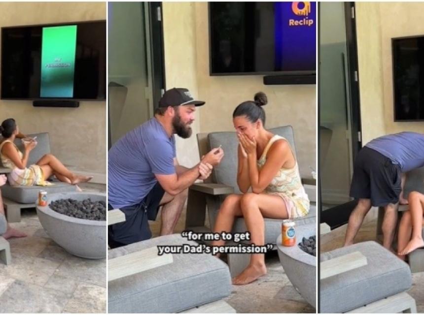 Poklonio joj je vjerenički prsten dok je s televizije dopirao glas njenog oca koji je dao dopuštenje mladiću da oženi njegovu kćerku. Buduća mlada bila je dirnuta.