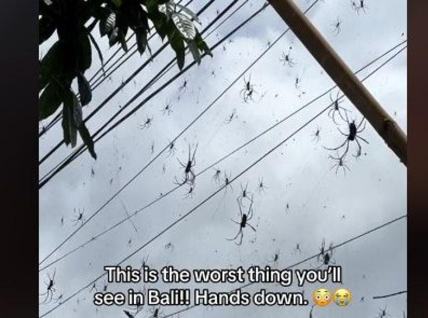 Korisnica TikToka Grejs Keli (Grace Kelly) snimila je nedavno na stotine pauka kako vise u mreži, a scena izgleda kao iz najgoreg horor filma. Mjesto događanja je jedna od ulica na putu između Ubuda i planine Batur na Baliju