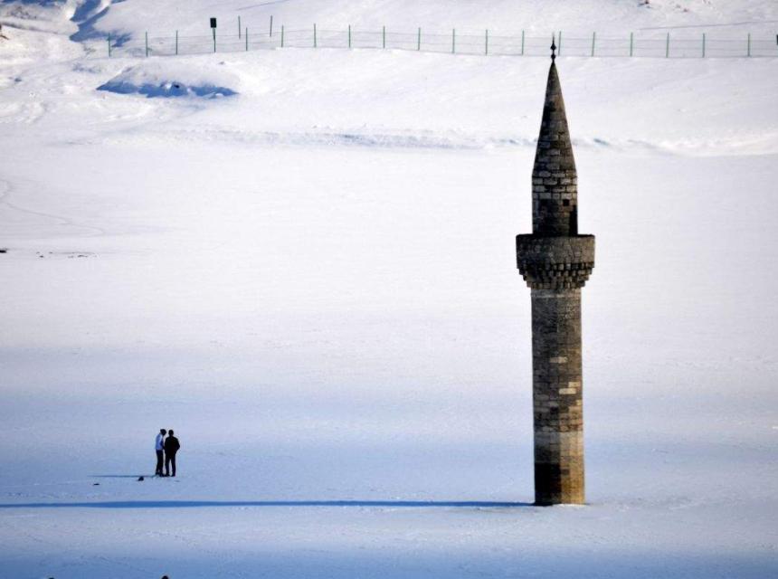 Munara koja izranja na sred jezera na istoku Turske turistička je atrakcija koja posebnu pažnju privlači u zimskom periodu kada je površina jezera okovana ledom.