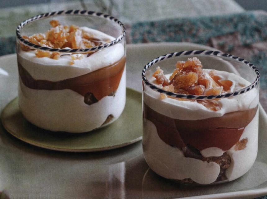 PRIPREMA: Razmutite agar u 200 ml vode, onda dodajte šlag i šećer, te sve zagrijte (ne da proključa). Dodajte sir i miješajte da se masa ujednači. Ostavite da odstoji u frižideru 12 sati. Izlomite čokoladu, dodajte 125 ml ključale vode, te ostavite da se ohladi 3-4 sata. Umutite mješavinu sa sirom i rasporedite je u 6 širokih čaša, stavite sloj kestena, sloj kreme od kestena i sloj musa od čokolade. Završite kremom od sira i ukrasite preostalim kestenima izerzanim na komadiće.