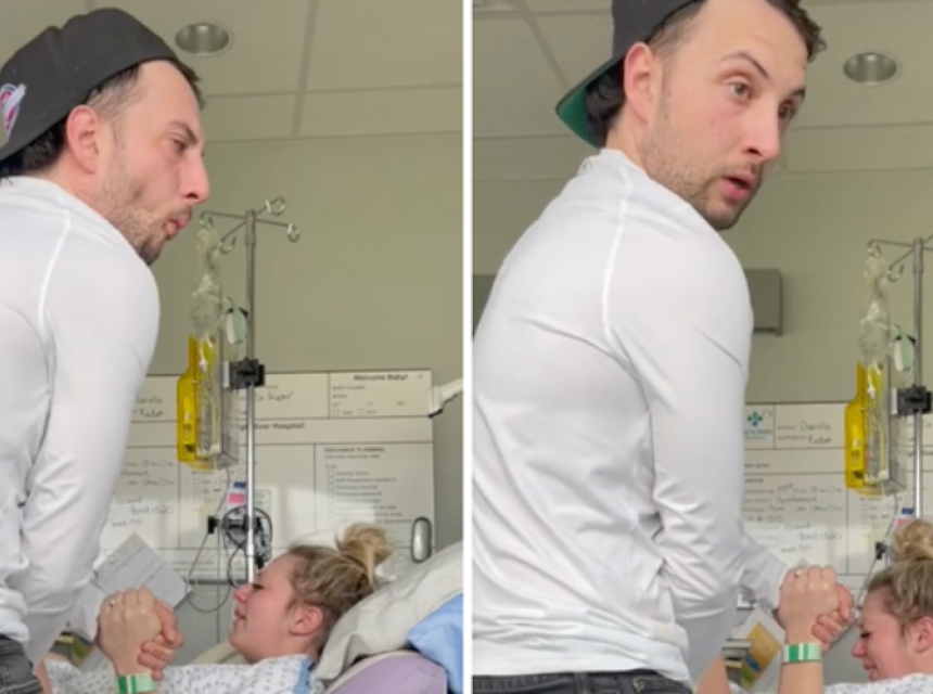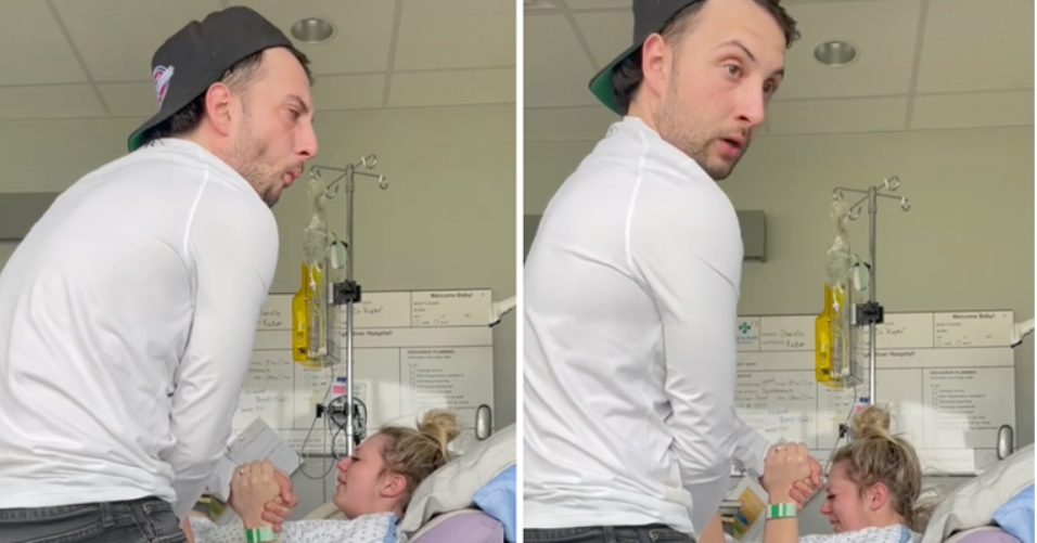 Kad je Danielle počela tiskati njihovu kćerkicu, brižni suprug je upalio kameru na mobitelu kako bi snimio važan trenutak. Stao je kraj supruge koja leži na bolničkom krevetu i čvrsto je primio za ruku. No onda ga je uhvatila mučnina, ali do samog kraja truda iz petnih žila se trudio izdržati. Čim je trud popustio, utonuo je u stolac kraj kreveta kako bi došao k sebi.