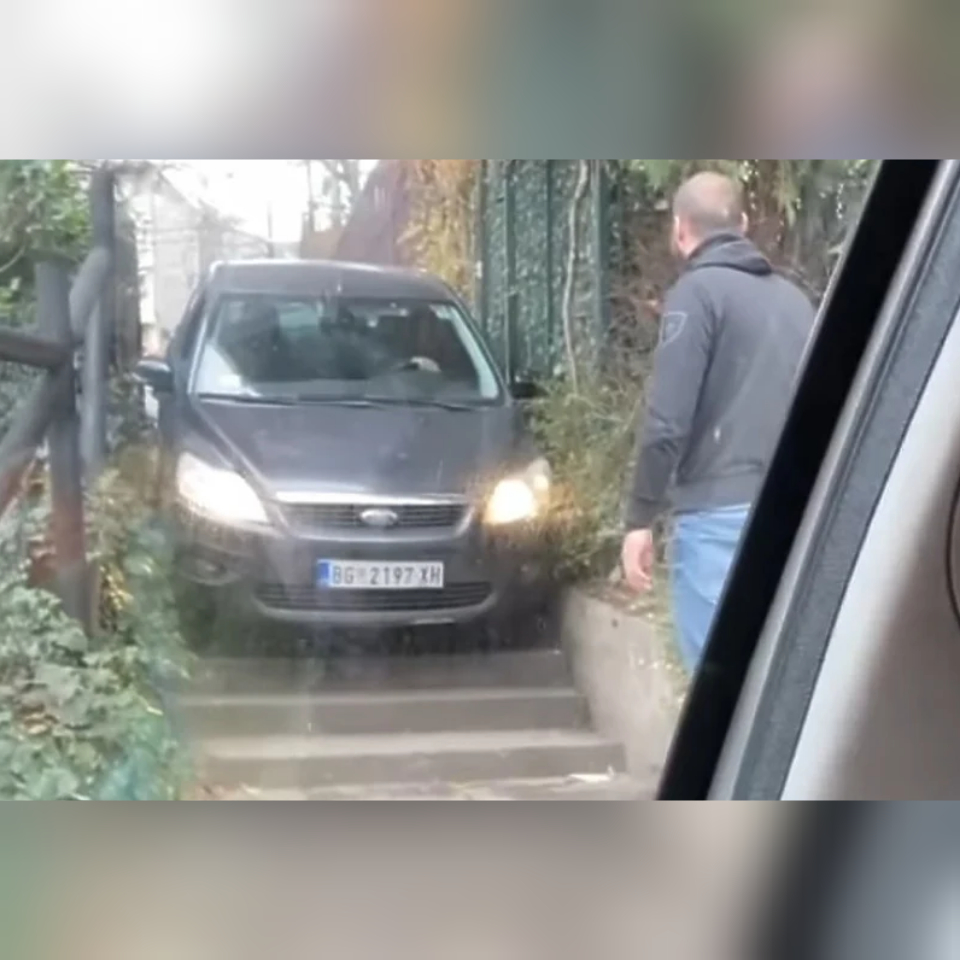 Na društvenim mrežama pojavio se snimak koji je izazvao nevjericu mnogih, s obzirom da je jedan čovjek iz nepoznatih razloga automobil vozio niz stepenice.