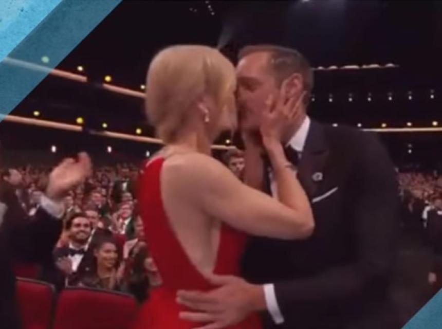 Dok je primao Emmy za najboljeg sporednog glumca u toj seriji, Nicole Kidman ga je bez ustezanja poljubila u usta što mu očito nije bilo previše mrsko.