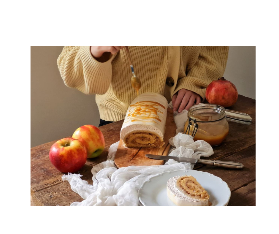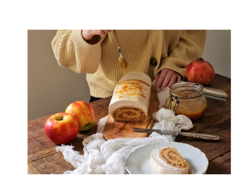 Dok su jabuke još tople uz pomoć papira pažljivo zamotajte kolač u roladu, i pustite da se ohladi. Uklonite papir i pošećerite šećerom u prahu prije posluživanja.