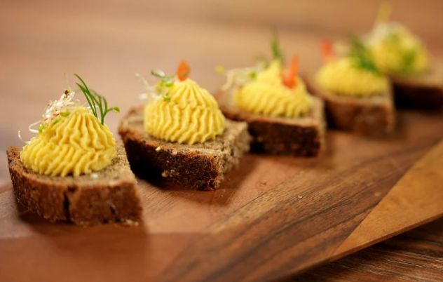 Pripremljenu masu ohladiti i servirati iz dresir kese na hljeb te dekorisati po želji sa svježim začinskim biljem i paradajzom.