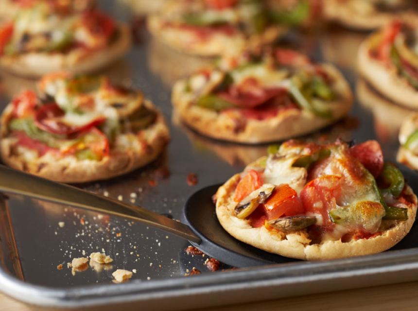 Zagrijati rernu na 220 stepeni. Nauljiti kalupe za mafine. Izrezati krugove od tortilja i staviti ih u kalupe. Dodati sos od paradajza na svaki, posuti mocarelom i željenom salamom i začiniti. Peći 10-12 minuta.