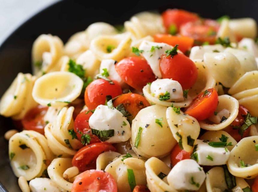 - Nasjeckajte mocarelu i posolite je. Stavite kuhati tjesteninu. Zagrijte maslinovo ulje i maslac pa dodajte luk i dinstajte te kasnije dodajte i bijeli luk. Kada luk omekša dodajte paradajz. Nastavite dinstati još 5 minuta, tek toliko da paradajz omekša.