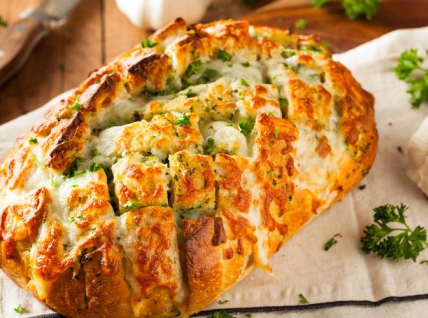 Pomiješajte naribani sir zajedno sa feta sirom, a možete dodati i neke druge sastojke kao što je paprika ili neki suhomesnati proizvod. Potom unutrašnjost hljeba premažite rastopljenim maslacem sa začinima, a onda dodajte i sireve.