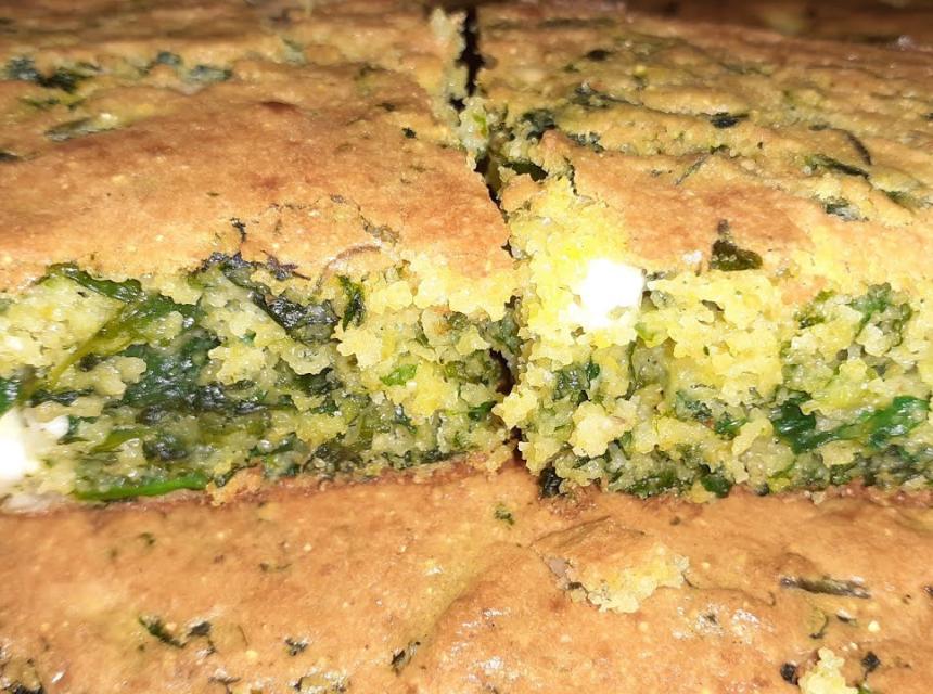 Operite zelje. Izidinstajte ga na malo ulja i začinite vegetom. Pomiješajte sa prezlama, jajetom i jogurtom. Izmiješati sve sastojke za tijesto i masu podijeliti na dva dijela.