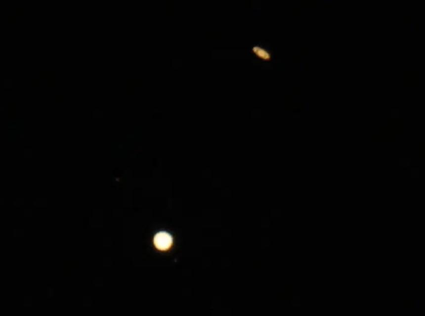 U 19:22 sati po srednjoevropskom vremenu dva plinovita orijaša bila su u istom vidnom polju jačeg dvogleda ili manjeg teleskopa i činilo se kao da se dodiruju, a u stvarnosti su 730 miliona kilometara udaljeni jedan od drugog, prenosi Hina.