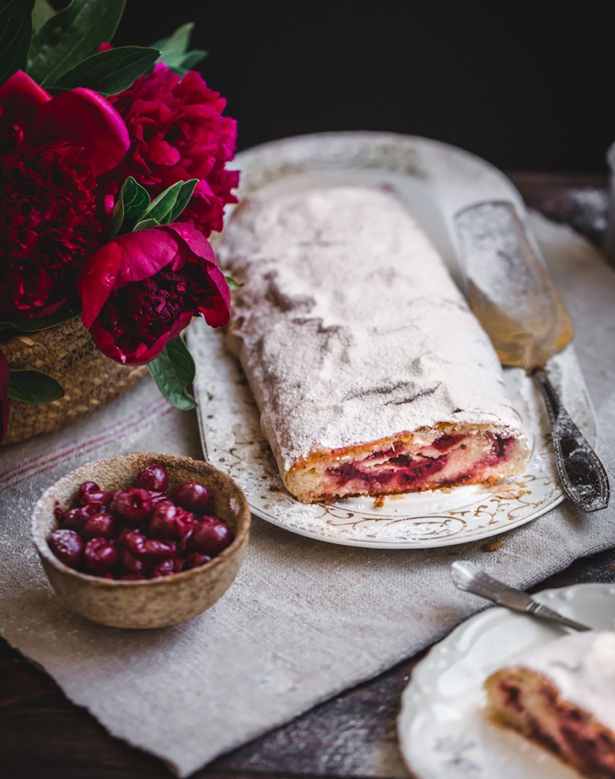 3. Nakon što ste premazali i treću koru, rasporedite voće, naribajte koricu limuna i zarolajte.