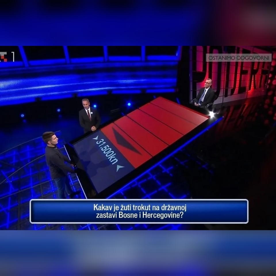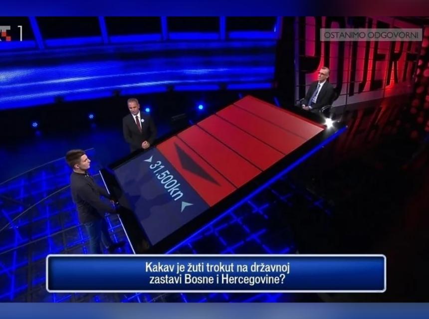 Naime, pitanje je glasilo: Kakav je žuti trokut na državnoj zastavi Bosne i Hercegovine?