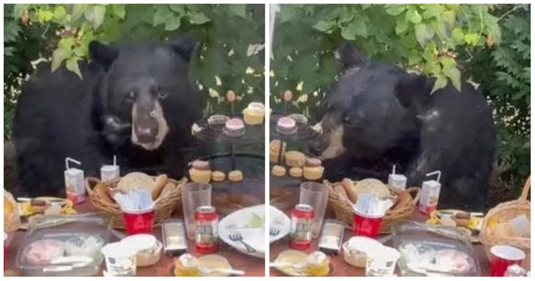 Rauf i Laura Majidian snimili su velikog medu kako je došetao iz šume počastivši se kolačićima namijenjenima za goste rođendanskog slavlja njihovog dvogodišnjeg sina. Gladni se medvjed sam poslužio kolačićima, no kruh i ostale namirnice nije ni taknuo.