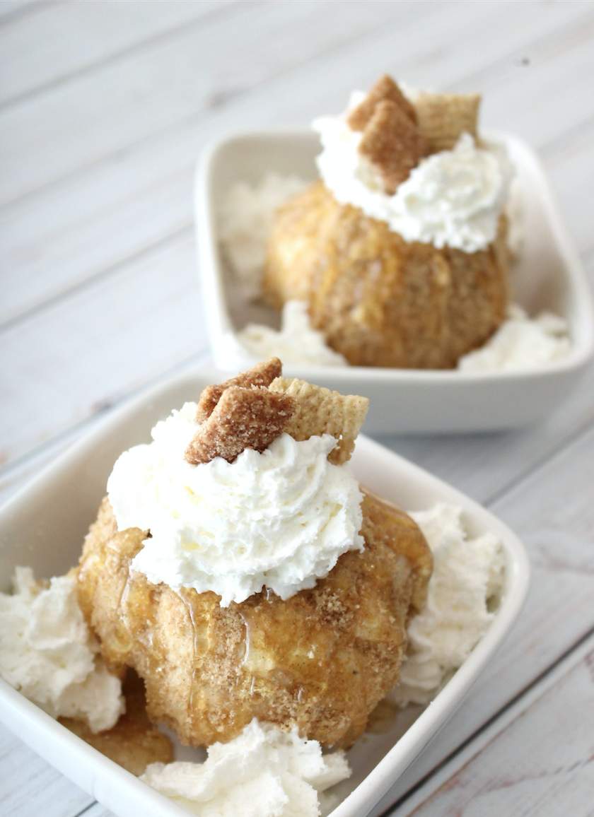 2. Izmješati šećer i cimet. U mješavinu uvaljati zamrznute kugle sladoleda. Ostaviti u zamrzivaču da se stegnu oko sat.