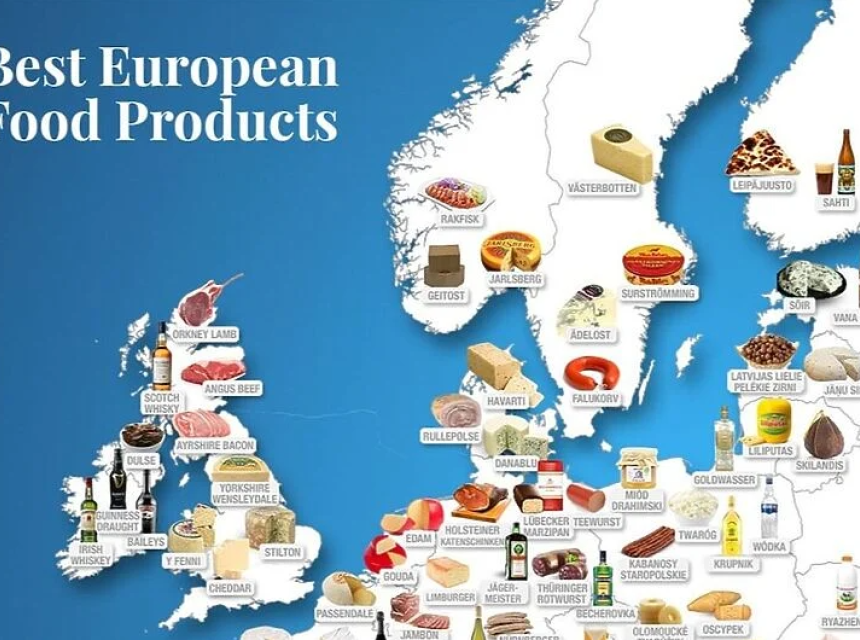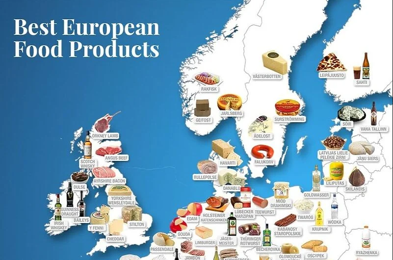 Mapa podijeljena na Instagram stranici TasteAtlasa prikazuje najbolje namirnice i prehrambene proizvode koje svaka zemlja pojedinačno nudi, a za neke je predstavljeno više najpoznatijih vrsta hrane i pića.