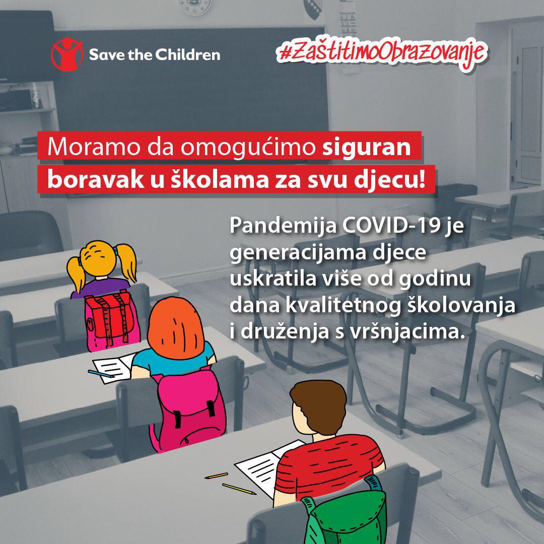 Save the Children poziva obrazovne djelatnike, donosioce odluka, roditelje, učenike i širu javnost da zajedničkim naporima zaštitimo obrazovanje od posljedica pandemije COVID-19 i svakom djetetu omogućimo pristup kvalitetnoj nastavi, bez obzira na okolnosti.
