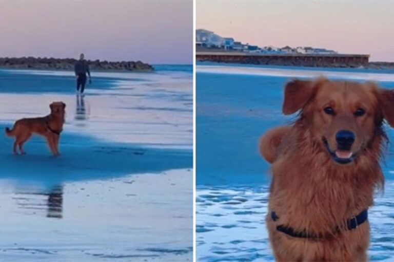Video, objavljen na njegovom profilu, prikazuje Pretcela kako šeće plažom sa svojim vlasnikom, sve dok u daljini ne ugleda svoju vlasnicu.