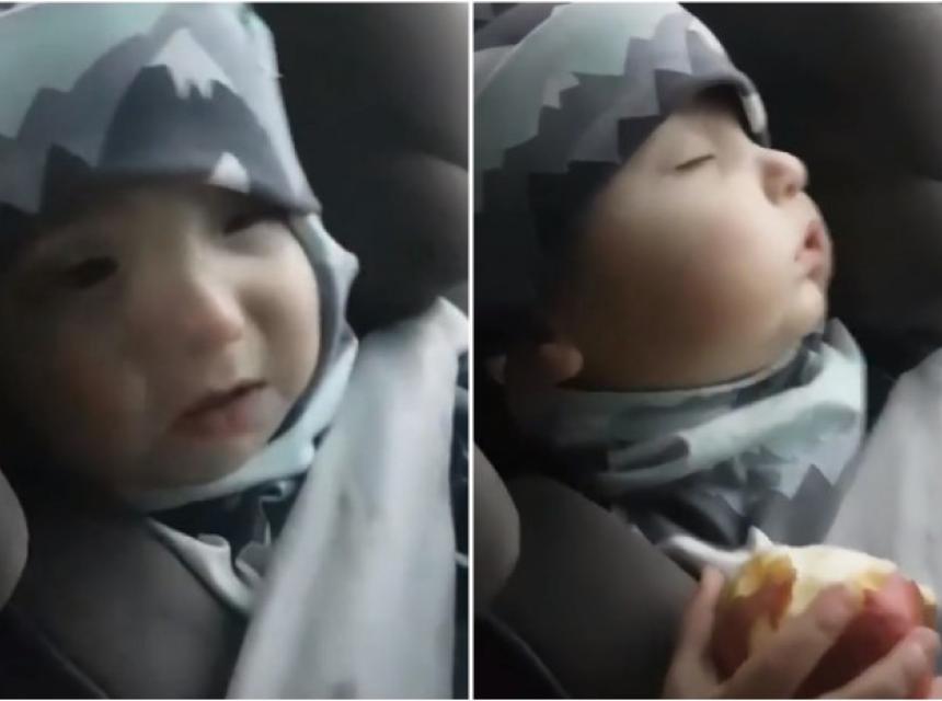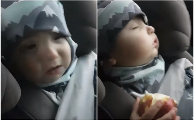 Korisnica TikToka Eva Meister objavila je zanimljiv video. Naime, u kadru je beba koja spava na zadnjem sjedištu automobila, a u ruci drži načetu jabuku.