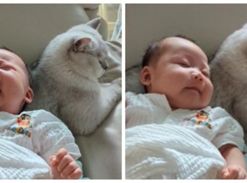 Postoji hrpa smiješnih i simpatičnih videa na kojima se mačke igraju s djecom ili na kojima čak paze na djecu, ali nema puno onih na kojima se vidi kako mačka uspavljuje bebu. Ova snimka, koja je nedavno objavljena na Redditu, prikazuje upravo to.