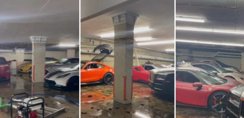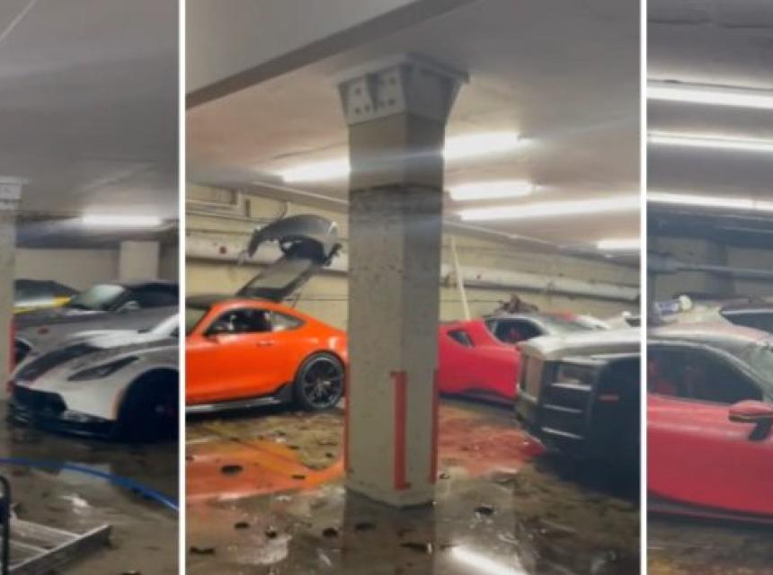 Na snimku kojeg je objavio korisnik Instagrama Florida_Corvette_Owners, 10 ili više superautomobila s cijenama od šest cifara potopljeno je u podzemnoj garaži.
