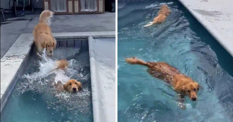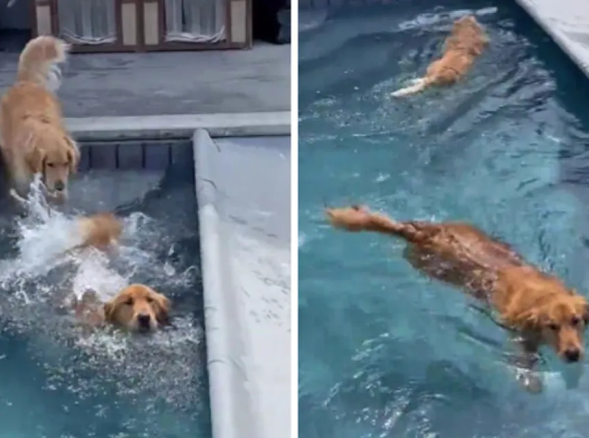 Tijekom zimskog dijela godine na bazenu je bio prekrivač, što je onemogućilo ovim psima da se brčkaju u njemu. No s većim temperaturama došlo je i vrijeme za micanje pokrivača i kupanje.