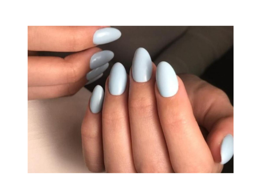 Dok su nokti u nijansi jagode i čokolade imali svoj trenutak ranije ove godine, ova nova verzija bi mogla postati vaš favorit. Ova nijansa plave nije oštra pastelna boja, već kremasta nijansa s hladnim tonom. Izgled se može postići jednostavno upotrebom pastelno plave boje ili stavljanjem plave podloge ispod poluprozirne bijele nijanse, što stvara iluziju mlijeka.