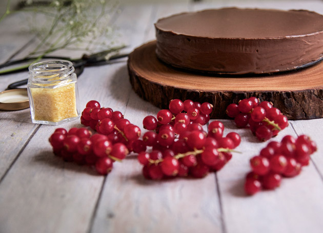 Ako je želite dekorirati jako će lijepo izgledati ako rubove torte obložite čokoladom. Na laganoj vatri rastopite čokoladu i izlijte je u neku posudu ili pekač, da bude tanka. I samo je stavite u frižider 20-ak minuta. Ona će se opet stvrdnuti. Razlomite je na kocke. Ja sam koristila ribizle i cvijeće, ali nije potrebno. Na slikama se vidi i zlatni prah, ali na torti na kraju nije došao do izražaja… Ovaj cijeli dio je vama na izbor!
